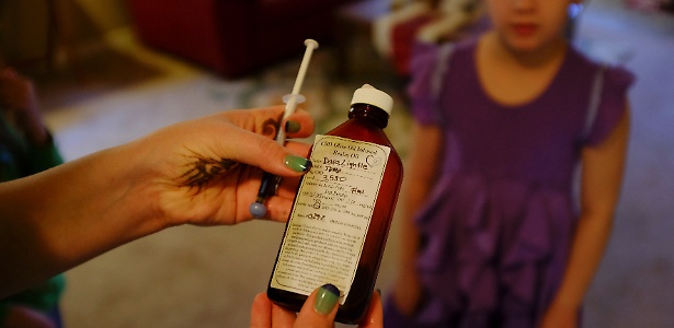 Lightle prepara para sua filha Madeleine uma dose de óleo derivado de