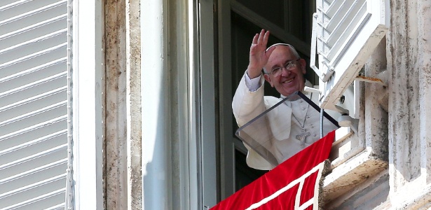 Papa Francisco acena durante oração do Angelus do último domingo (23), no VaticanoA italiana Francesca Pardi, homossexual assumida e dona de uma editora de livros infantis sobre famílias formadas por casais gays, recebeu uma carta do papa Francisco dizendo para ela "seguir em frente".