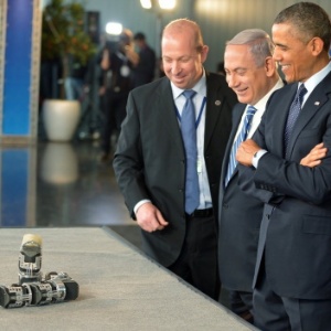 dos EUA, Barack Obama (à direita), e o premiê de Israel, Benjamin