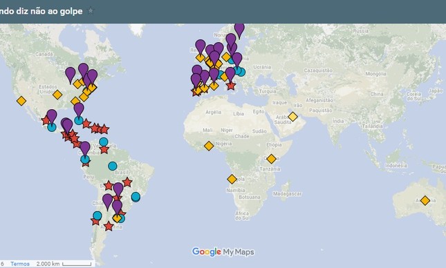 É um mapa hospedado no Google com sinalizações de declarações, reportagens e eventos anti-impeachment ao redor do mundo. A plataforma já tem 19,6 mil visualizações.